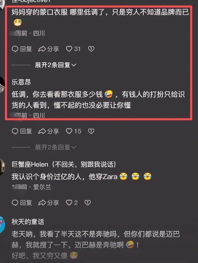 视频里的姆妈,穿了一件普通的玄色羽绒服,裤子和鞋子也齐是很日常的技俩,以致有点过期,脸上戴着口罩,看着跟我们小区里接送孩子的普通姆妈没两样。 就连她身边的小孩,一稔也很朴素,少许看不出是读得起天价私立学校的孩子。拍视频的家长其时就懵了,心里犯陈思: 当今的有钱东谈主齐这样奇怪吗?开着上千万的迈巴赫,穿搭却这样“土”,是挑升低调,依然审好意思确凿不可?她把视频发到网上,没念念到一下子就吵翻了。