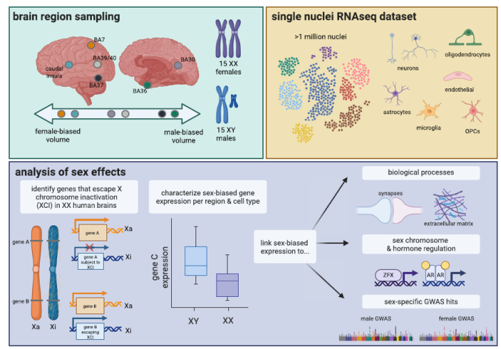 过往一些斟酌指示,很多神经系统疾病存在显贵的性别偏差。比如男性更容易患自闭症、帕金森病,而女性则更易患阿尔茨海默病(AD)、抑郁症。《细胞》杂志一篇论文就曾指出,雌性小鼠X染色体上编码泛素特异性肽酶11(USP11)的基因更活跃,它与病感性tau卵白集结相关,因此更可能导致AD发生。 另外,有斟酌关怀了男性与女性大脑在体积或结构上的宏不雅各别。举例,某些脑区男性体积略大,另一些脑区则女性体积略大。然则,这种宏不雅各别究竟源于细胞数目的不同,也曾细胞里面基因作为的各别,又是否与疾病风险相关仍然不够了了。 近期,《科学》杂志一项斟酌在单细胞差别率上画图了东说念主类大脑皮层中基因抒发的性别各别图谱,再行的视角为咱们揭开了这一谜题。
