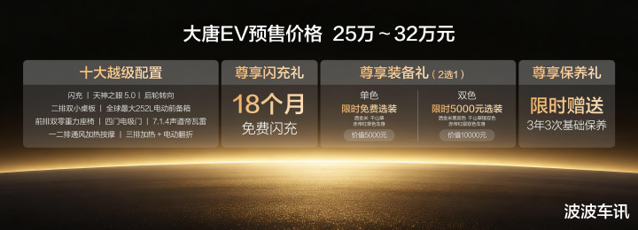4月24日开幕的北京车展上,要说哪款车有让东谈主跨越的期待值,那细目是比亚迪大唐EV的预售了,好多小伙伴像我通常,从上昼就运转等大唐EV的预售发布会,范围到下昼才开。天然发布会让东谈主等了,关联词它带来的惊喜确是不小的,因为预售价钱仅25-32万元,号称是价钱屠户。在发布会现场,比亚迪高管路天有一句话很有趣味趣味,那便是他说比亚迪不是耻辱东谈主,依我来看,比亚迪这十足是不给敌手东谈主情啊,以好多车型一半的价钱齐能带来同等体验,要害它还是一款比亚迪,技艺保捏跨越。