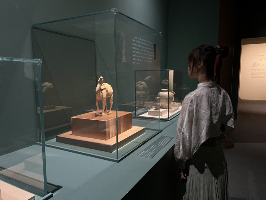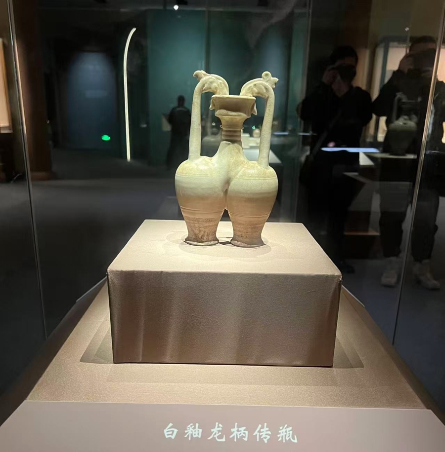 以物不雅世,文物中的隋代更生 展览以“芝兰天挺”“青白交辉”“丝路琉光”“区宇宁一”四个篇章,将李静训的个东说念主运说念与期间配景紧密交汇。她虽早一火,却身系陇西李氏、北周宇文氏、弘农杨氏、匈奴独孤氏四大望族,她的外祖母杨丽华是隋文帝杨坚嫡长女,而独孤伽罗则是杨丽华之母,降生独孤氏。这些眷属以攀亲与结好团员力量,为隋文帝归并南北、草创隋代盛世积攒了根基。 展览中的诸多文物,更将隋代的富贵与灵通展现得大书特书。李静训曾祖父李贤墓出土的鎏金银壶,本是波斯酒具,壶身上却描画着古希腊传闻故事,壶把上的深目高鼻东说念主像,见证着丝路之上的细腻归并;2023年陕西出土的骆驼俑,驮袋上刻画的希腊酒神狄俄尼索斯醉意可掬,印证了隋代对外文化换取的深度与广度;墓中出土的17件青瓷、白瓷,则记录着朔方白瓷走向熟悉的关键阶段,为唐五代“南青北白”的瓷业阵势奠定了基础。