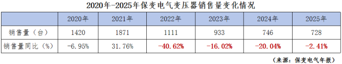 这一仗,保变电气不仅“白给”了部分变压器中枢本事,还让国外阛阓拓展受到一定冲击,光规复元气预测也需要一段时间。 统一时间,保变电气的主营业务——变压器销售,也碰到了增长瓶颈。 2022年-2025年,保变电气变压器销售量连年下滑,从1111台/年降至728台/年,筹谋现款流净额也连年下滑。