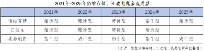 存储阛阓中,德明利不是唯独一个“赌”的企业。 2021年-2025年,佰维存储、江波龙基本也处在主营业务不得益的“赌徒型”现款流状态,对比之下,兆易翻新的现款流气象就好得多,筹谋现款流净额多年为正。